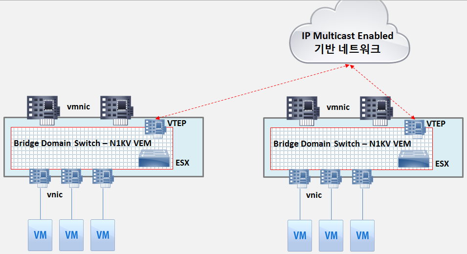 - VTEP들 간에는 IP Any source Multicast Group의 버스를 통해 새로운 망을 생성한다