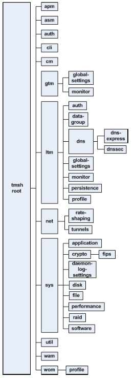 - F5 BIG-IP OS인 TMOS에서는 BIG-IP전용 CLI Command인 TMSH(Traffic Management Shell) 를 이용한다.