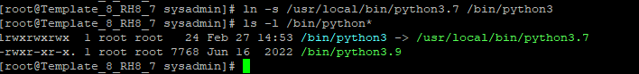 # ln -s /usr/local/bin/python3.7 /bin/python3