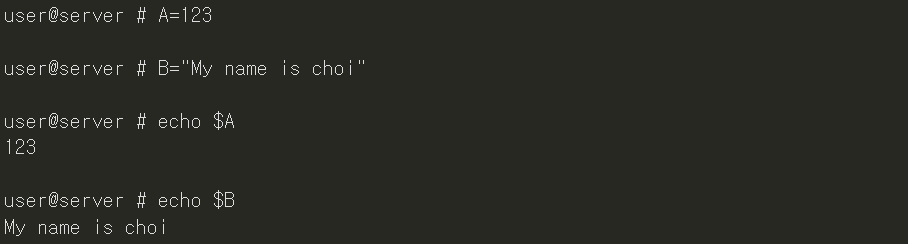 - 변수 선언 후 echo 명렁어로 확인